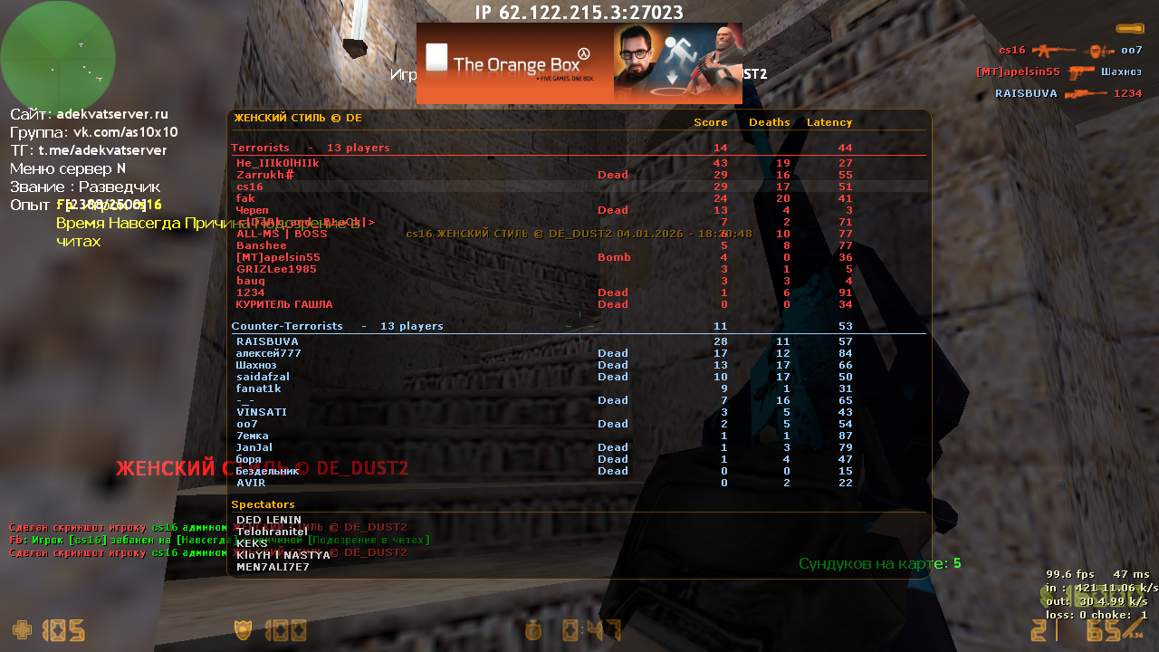Причина: Подозрение в читах