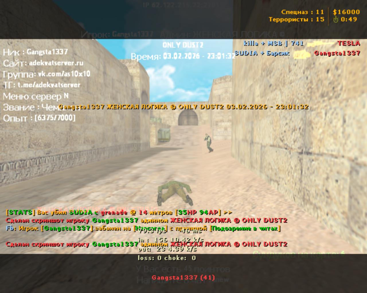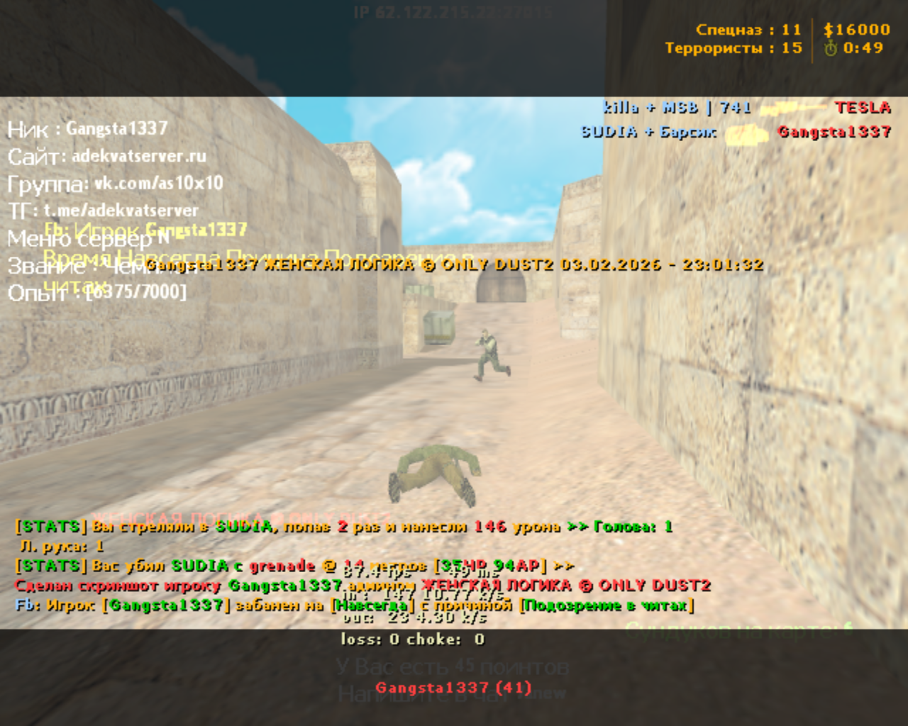 Причина: Подозрение в читах
