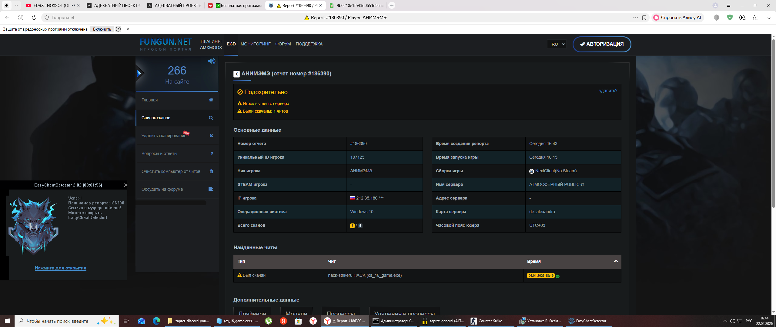 Причина: Подозрение в читах