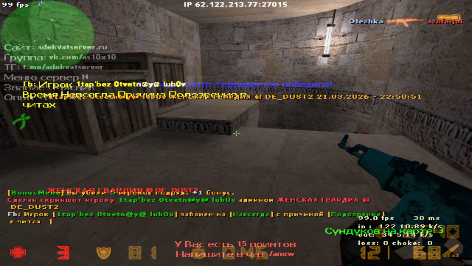 Причина: Подозрение в читах
