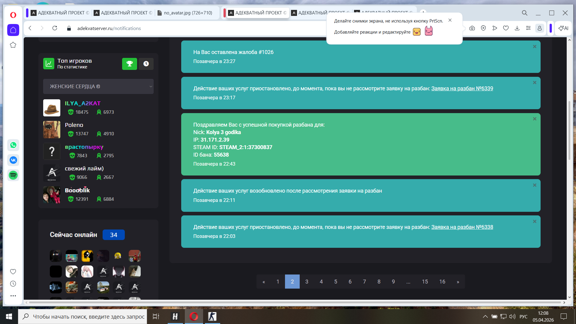 Неадекватный обиженный "админ" 2 раз дает бан с примечанием обход бана который был получен легальном образом.